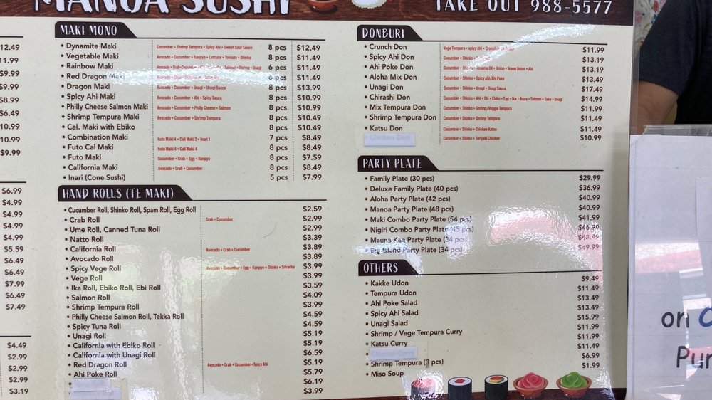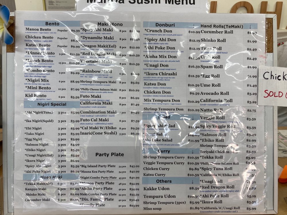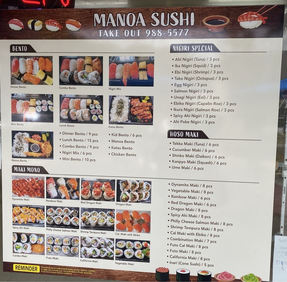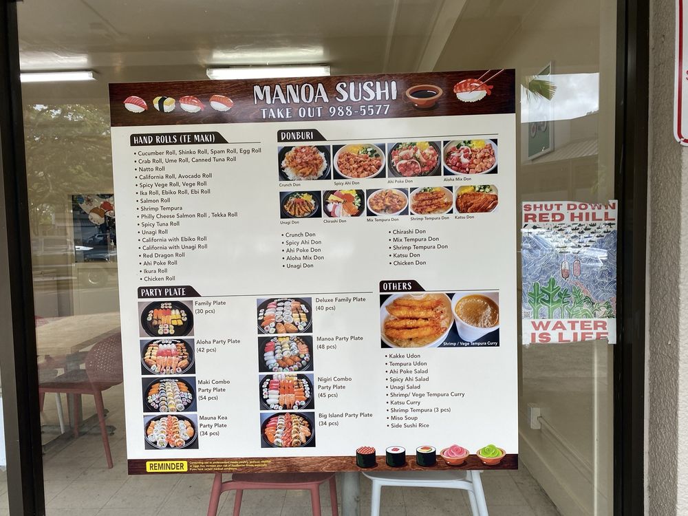 Welcome to Manoa Sushi, a delightful destination for Japanese cuisine nestled in Honolulu. Located at 2752 Woodlawn Dr, this charming eatery is celebrated for its exceptional hand rolls, featuring a variety of options from the Crunch Don to the festive California Roll. Each dish bursts with flavor, reflecting the uniqueness of the islands.